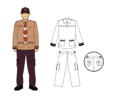 Pakaian siaga putra yang ada garis-garisnya, lengannya panjang. Tentukan ukuran, pilih baju atau celana yang tersedia.